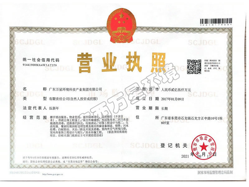 廣東萬(wàn)星環(huán)境科技產(chǎn)業(yè)集團(tuán)有限公司創(chuàng)始是東莞市寶麗潔清潔服務(wù)有限公司。